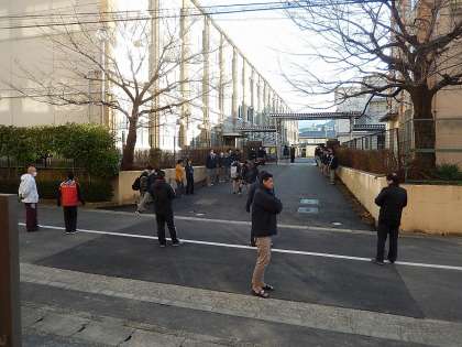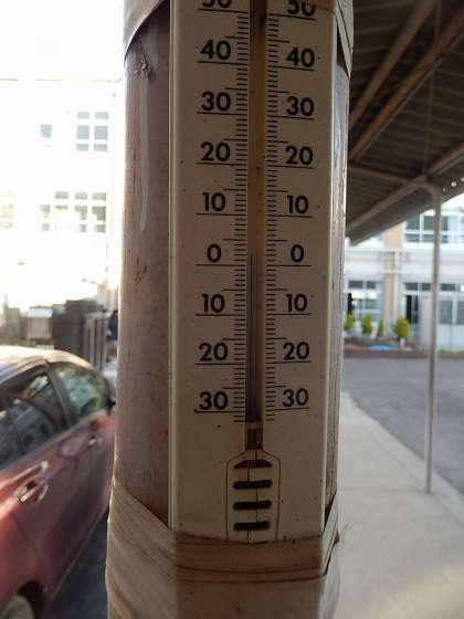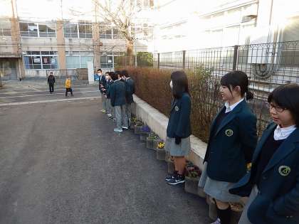 木曜日は生徒会本部も加わってのあいさつ運動です。渡り廊下の寒暖計は2度を示す