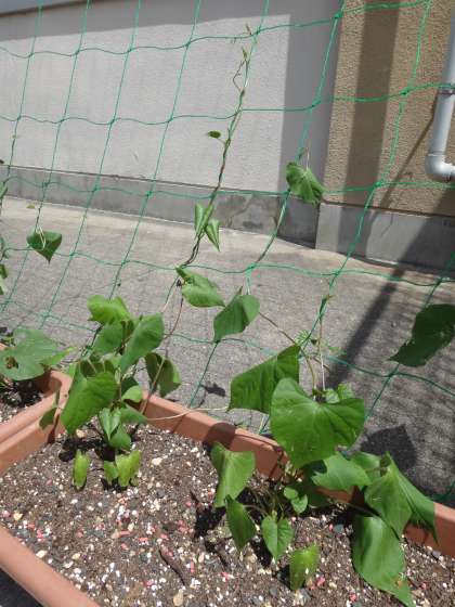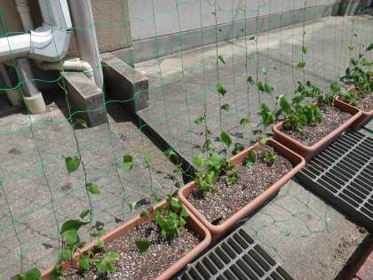 先日準備したアサガオのプランターですが、順調にネットにツルを巻いて伸びていってます。虫に葉を食べられているアクシデントを今朝管理用務員さんが発見していただき、対策をしてくれました。トウモロコシに負けないぐらい成長していってほしいですね。