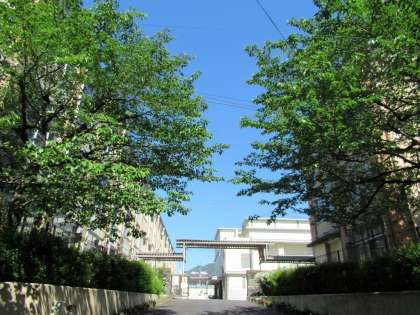 正門の桜を見上げる景色もこの1か月で大きく変わりました。ピンクの美しい花から若葉へ,そして現在は緑が増してきました。自然を見ていると,私たちも変化や成長を大切にしなければと改めて感じさせられます。