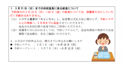5月後半分の給食に関するお知らせ