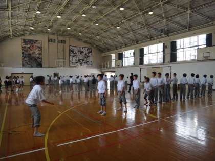 5限目、1年生で校外学習で行われるクラス対抗レクレーションの練習が行われました。本日の練習は「大縄とび」でした。