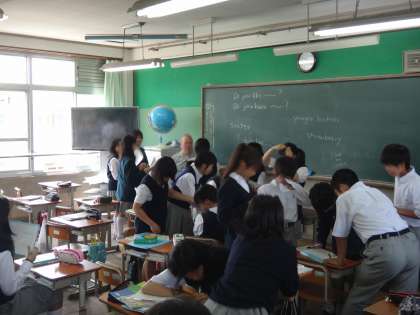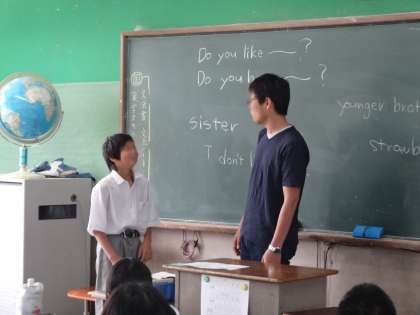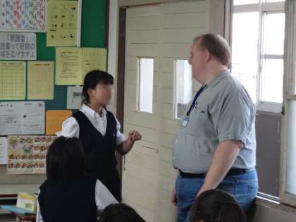 本日、ALTが来られて、1年生の授業でDo you like〜?、Do you have〜?を使ったインタビューの授業を行いました。友達同士やALT、たまたま廊下に通りかかった先生にインタビューをし、盛り上がっていました。
