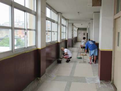 北校舎3階と2階の廊下の腰壁は何色だったでしょうか?