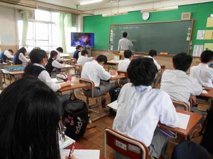 今日は,ウォーミングアップ期間最終のステップ4(一斉授業6時間)です。来週月曜日から部活動も再開します。机の間を最大限に空けて授業を行っています。