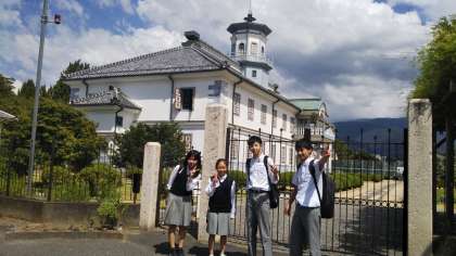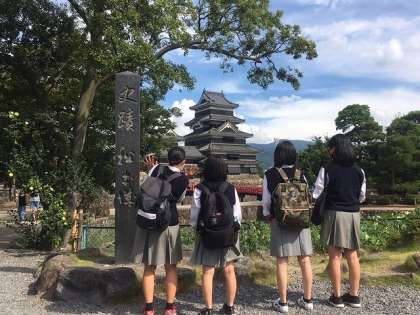 写真は,開智小学校と松本城です.
