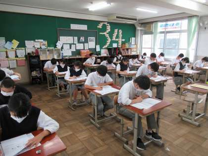 定期テスト2の2日目を迎えました。各教室ではピリッとした緊張感のもと,生徒たちが解答に打ち込んでいます。