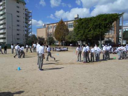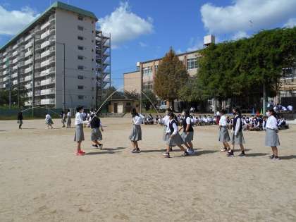 体育大会色別対抗「縄跳び」の練習が,昼休みにありました。8の字に回りながら,一人ずつ順に飛んでいきます。時間内に何回回れたか合計の回数で競います。
