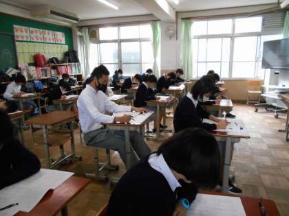 進路に向けた実力を知る大事なものです。生徒は,最後まで粘り強く問題に取り組んでいました。