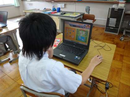 育成学級でPCを使っての授業が行われていました。大人もびっくりするほどのマウスさばきでした。