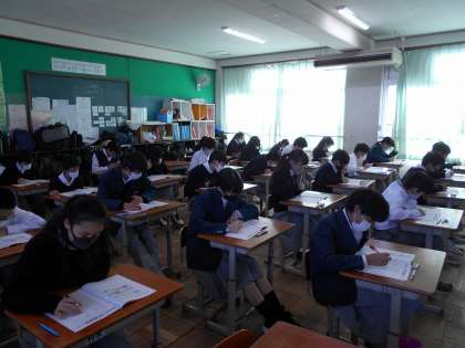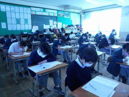 1・2年生の学習確認プログラムが,月曜日と火曜日にありました。中学校の学習の理解度を確認するためのものです。みんな真剣に受けていました。