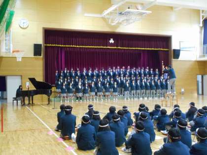 各学年合唱を披露する合唱発表会を体育館で行いました。1年生は「We'll Find The Way」,2年生は「HEIWAの鐘」,3年生は「大地讃頌」を歌いました。どの学年も心震え,自然と涙する素晴らしい歌声でした。