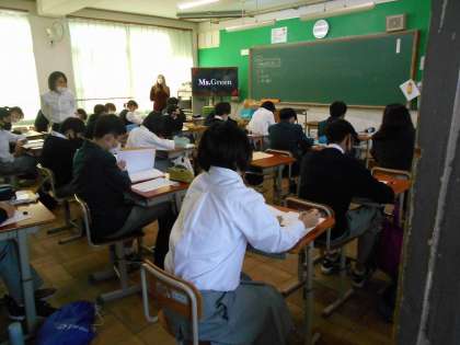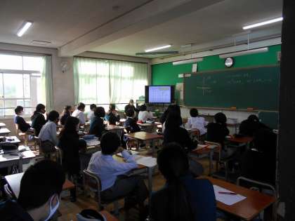 1年生の英語では,ALTに英語で一生懸命質問をしていました。数学では,画面に映る座標を素早く答えていました。