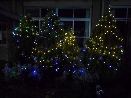 放課後,生徒会本部役員が北校舎入り口前の木にイルミネーションを飾ってくれました。コロナ禍で厳しい日々ですが,灯りを見て癒され,元気が出ればとの想いが込められています。