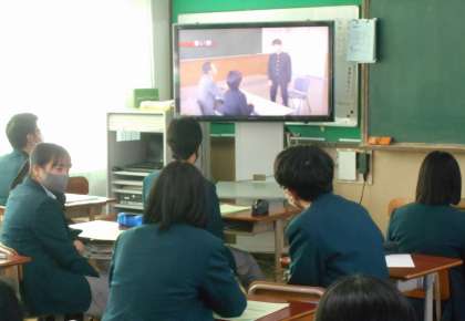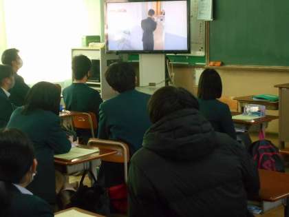 面接練習に向けて,面接の心得を学級で確認しました。社会に出たときの基本となるものなので,みんな真剣に見ていました。