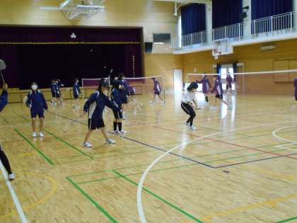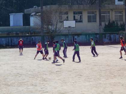 寒い中,体育の授業では男子はサッカー,女子はバドミントンを行い,元気いっぱい活動していました。一番下の写真は,社会科の授業です。