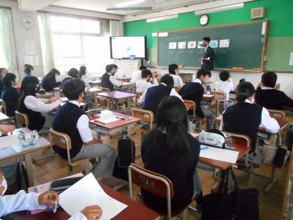 国語で「人生をかける旅にでる」なら,どの動物と旅に出るのか,その理由を発表する言語活動の学習を,美術で「絵文字」の題材になる字を完成をイメージしながらの創造活動の学習を行いました。
