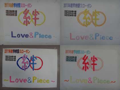 今年の学校祭のテーマは「きずな むげんだい 〜Love & Piece(愛とかけら)〜」