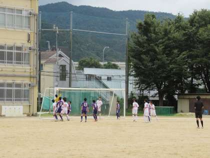 17日勧修中を会場に公式戦がありました。対戦相手は七条中でしたが,善戦したものの力及ばず,敗退しました。最後まであきらめずにボールを追う姿に,熱いものを感じました。