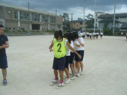 中:学年団体競技「むかで競争」(本校では『むかでボンバー』と呼びます)
