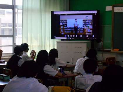 1学期の終業式を,表彰式に引き続きTeamsを使って図書室から各教室に配信しました。コロナ禍でも生徒の頑張りや保護者の方々の支えによって,1学期を終えることが出来ました。ありがとうございました。
