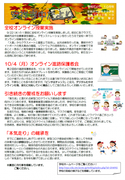 学校だより10月号をアップしました。ご覧ください。