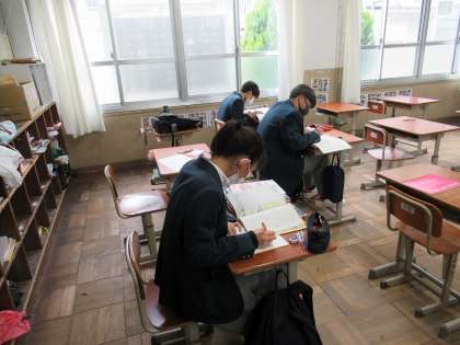 定期テストも終わり,3年生は目標を定めてがんばる時期になりました。今日の土曜学習では,問題集や過去の入試問題に取り組む生徒が多くいました。