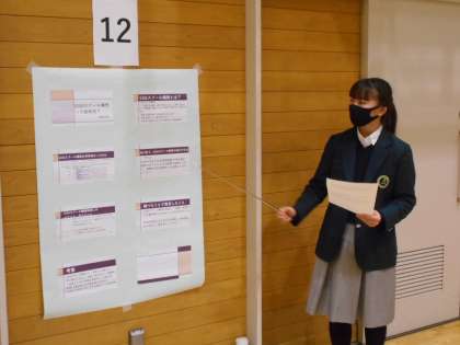 2年生は総合的な学習の時間における学習(SDGs関連)のまとめとしてポスター発表会を行いました。1年生が聞き手として参加し,発表に対するコメントや感想記入を行いました。