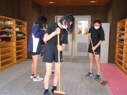 本校では,評議専門委員会の時間に,委員会に所属していない部活動部員で校内の清掃活動をしています。5月23日(月)にも,黙々と清掃活動に取り組む部員の姿が校内のあちこちで見られました。