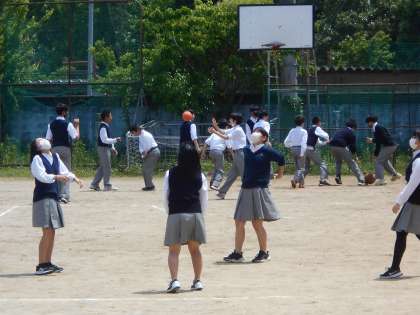 昼休みは,多くの生徒がボールを使ってグランドで思いっきり体を動かして遊びます。体育委員のボール当番が貸してくれるボールは,バレーボール,バスケットボール,サッカーボールの3種類です。先生もボールを借りに来て生徒と一緒に遊びます。