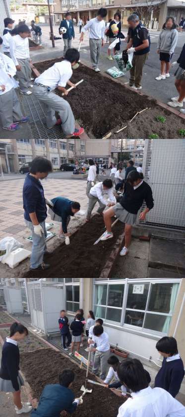 明日から、1クラスずつ放課後にチューリップの球根を植えていきます。来年の4月、色とりどりのチューリップが花壇に咲き誇り、新入生を迎えてくれるでしょう。