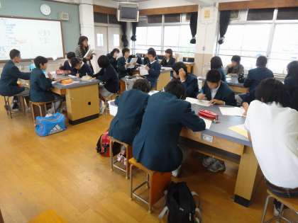 先日の生徒会役員選挙で新しい第40期生徒会が決まり、本日放課後、旧生徒会本部と新生徒会本部が集まり、リーダー研修会が行われました。