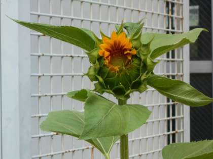 美化保健委員会が中庭に植えた向日葵の花が開花しました。