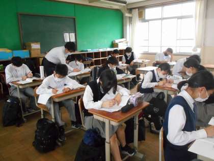 6月22日(水)〜24日(金)に定期テスト1が実施されます。今日から1週間前。放課後の学習会には,多くの生徒が参加しました。(写真上:1年,写真中:2年,写真下:3年)