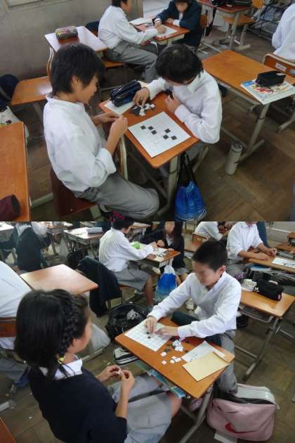 本日の6限、1年生でオセロ大会が行われました。卒業生が以前に作った手作りのオセロを使い、4チームに分かれのクラス対抗戦です。