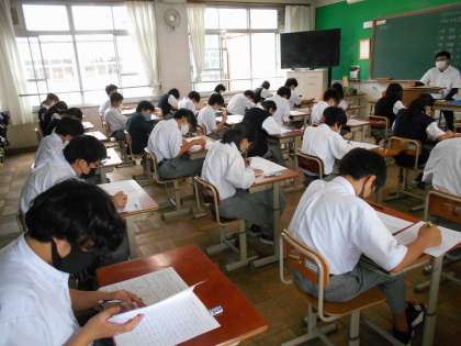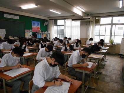 今日から3日間定期テスト1が実施されます。1年生にとっては初の50分間のテストです。今日までの努力を実らすために時間いっぱい頑張っています。