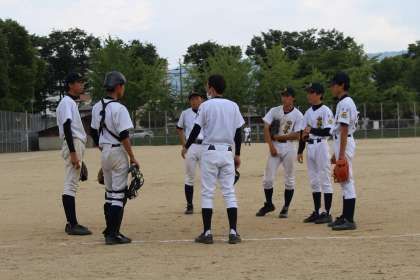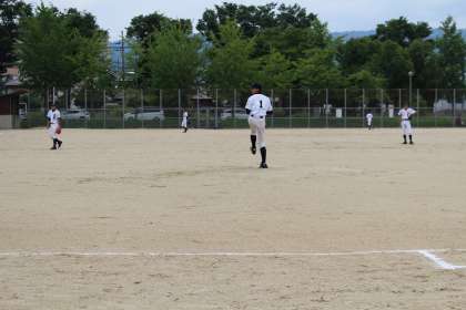 7月9日(土)勧修寺公園グランドで,初戦の双ヶ丘中学校との試合が行われました。互いに点を取り合う息を呑むシーソーゲームは,最後までもつれました。健闘かなわず惜敗しましたが,3年生は,涙とさわやかな笑顔で最後の夏を終えました。