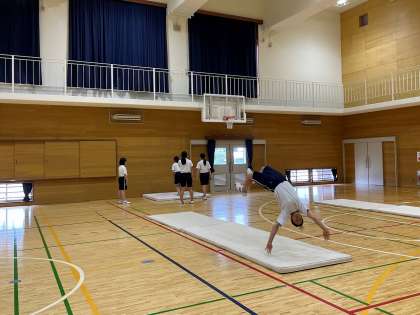 3年生保健体育科女子の授業はマット運動を行っています。さすが3年生。難しい技に果敢にチャレンジする姿が見られました。