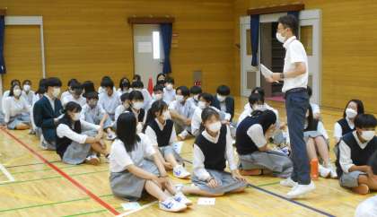 修学旅行5日前。現地で集団行動がスムーズにいくように、体育館で集団行動の練習をしました。並び方の確認やバスの昇降などについて確認しながら真剣に練習に取り組みました。