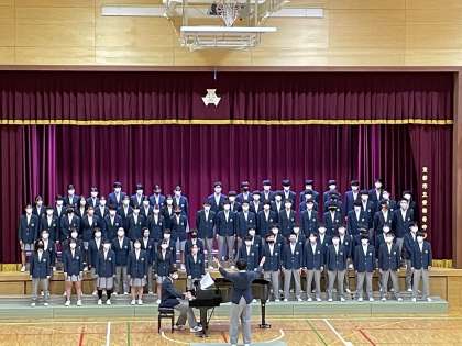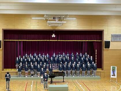 3年生の学年合唱の曲は「大地讃頌」。ソプラノ・アルト・テノール・バスの混声4部の大曲です。さすが最高学年。短い練習期間で、圧巻の素晴らしい合唱に仕上げてくれました。曲の最後の部分のハーモニーがしばらく体育館に余韻として残っていました。