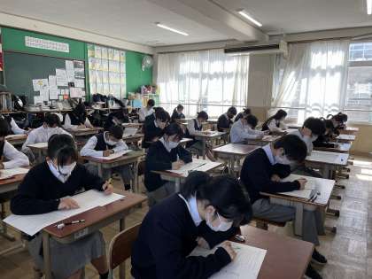 10月11日(火)・12日(水)の2日間、全学年で学習確認プログラムを実施します。今日は3教科が行われ、どの学年の生徒も真剣に取り組んでいました。