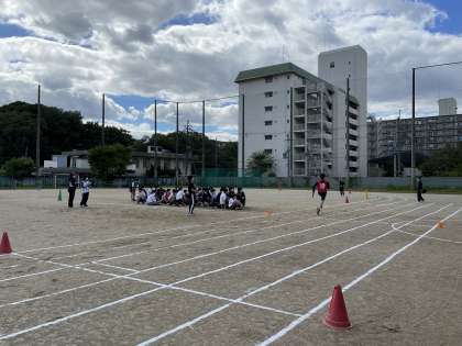 4時間目は、3年生の学年練習を行いました。学年種目の「全員リレー」を実際に走ってみました。真剣に走る人、様子を見ながら手加減して走る人、真剣勝負は本番のお楽しみです。
