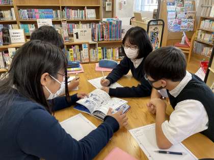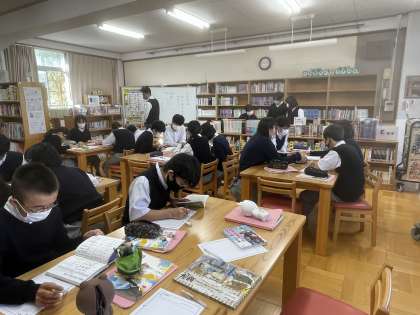 2年生の国語科では、「平家物語」について学習しています。本時は、図書室で「平家物語」についての調べ学習を行いました。PCやスマートフォンを使って、インターネットで簡単に検索できる便利な時代になってきましたが、たまには書籍を使って紙ベースで調べてみるのも良いものです。「平家物語」についてだけでも、たくさん本があることに驚きながらも、生徒たちは楽しく調べ学習に取り組んでいました。