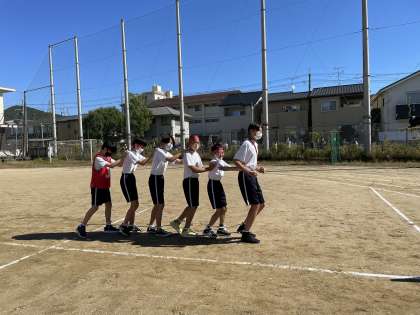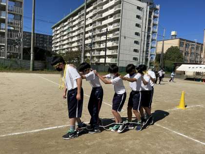 「1・2、1・2」「左・右、左・右」声を掛けながらみんなの気持ちや呼吸を合わせて進みます。練習の時と比べると、どのチームも格段に速くなっていました。