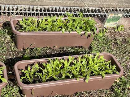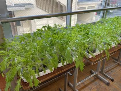 2年生が技術の時間に栽培している水菜がずいぶん大きくなりました。毎日の水やりを欠かさず行っている成果です。来週あたりに収穫をするそうです。