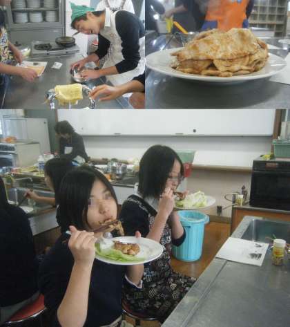 本日2限3−4、3限3−1、4限3−5にて家庭科の調理実習が行われ、「豚のしょうが焼き」を調理してみんなでおいしくいただきました。
