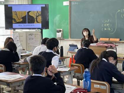 1年生の美術は、芸術作品についての鑑賞の授業で、尾形光琳などについて学習しました。(写真上)