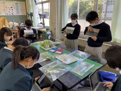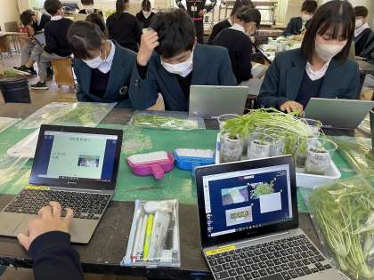 収穫した水菜を写真に撮って、成長記録をロイロノートを使ってまとめました。