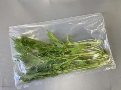 収穫した水菜を袋に入れると、まるでお店で売っているような感じになりました。家に持って帰ってどんな料理になるか楽しみです。自分で育てた水菜を家族と一緒に美味しく食べてください。