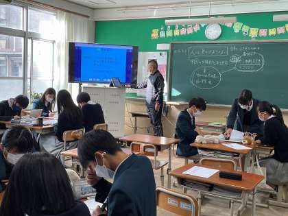 また、別のクラスでは、ものの見方や解釈のしかたはお国柄や個人によって違うなど、たくさんの正解があることに気付き、物事の本質を見極めることの大切さについて考えました。(写真下)