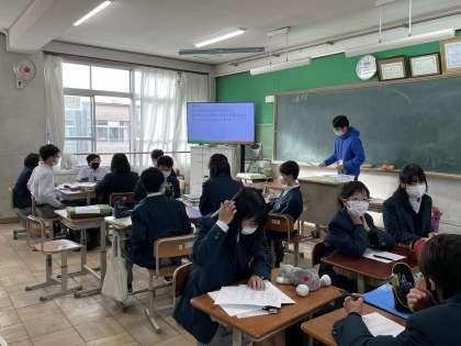 1年生では、人権学習の2時間目を行いました。障害がある人との共生やバリアフリーについて学習しました。